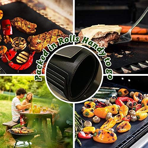 【Portable to go】- Size:16*13 Inches.You can cut to fit your tray or grill,even cut holes to provent fat splashing. Rolls back up to store and portable to go on camping. You will get 5pcs of BBQ Grill Mats.