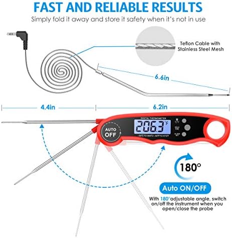 After-sales service: High quality products and services are always our priority. This digital meat thermometer is ideal for your daily use. If you aren’t completely satisfied with your purchase, please reach out to us without any hesitation.