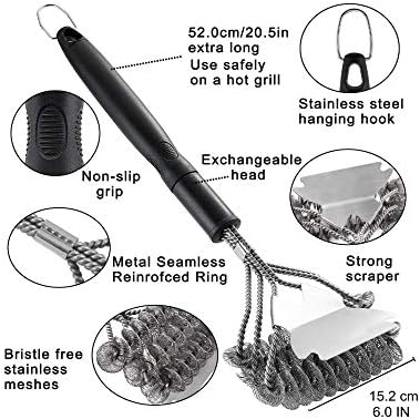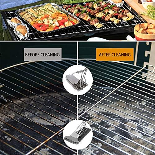 Dulousia Grill Brush and Scraper, 4 Set BBQ Tools, Safe BBQ Cleaning Grill Brush and Scraper Stainless Steel Grilling Accessories Cleaner for Weber Gas/Charcoal Porcelain/Ceramic/Iron/Steel Grill