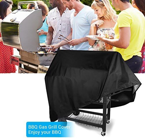 MAXFE.CO Gas Grill Cover, 145 cm Heavy Duty BBQ Cover Waterproof Outdoor Barbeque Grill Cover for Weber, Char Broil, Brinkmann with Drawstring and Spring Lock