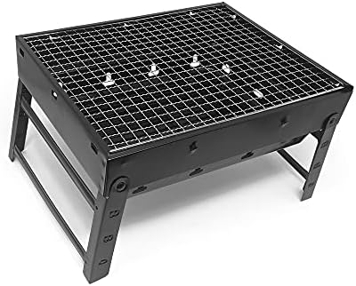 PLASTIFIC Long Handle Bbq Grill, Portable and Foldable Stainless Steel BBQ Grill Basket Roast for Fish/Vegetable/Steak/Shrimp, Iron Wire (Portable 38x27x21cm Flat Grill)