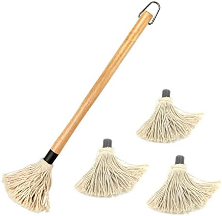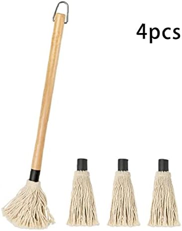 Sanfiyya Bbq Basting Mop Grill Baster Mop with 18 Inch Wooden Handle 3 Extra Replacement Heads 4pcs