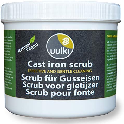 Uulki Natural Cast Iron Cleaning Scrub (500 g) – 100% Plant-Based/Vegan & Healthy to Work with – Removes Bad Odours – for Cast Iron Cookware & Dutch Ovens