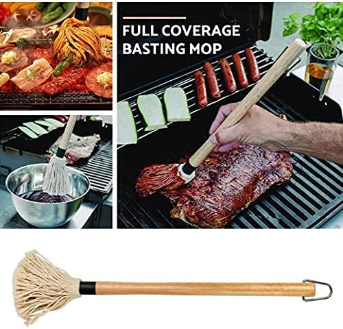 YepYes 4PCS BBQ Brush Mop BBQ Sauce Basting Mops with Long Wooden Handle Barbecue Grilling Basting Mop with Hard Wood Handle for Sauce Cleaning